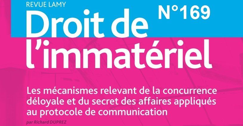 R.Duprez, Les mécanismes relevant de la concurrence déloyale et du secret des affaires appliqués au protocole de communication, Revue Lamy Droit de l'immatériel, avril 2020.